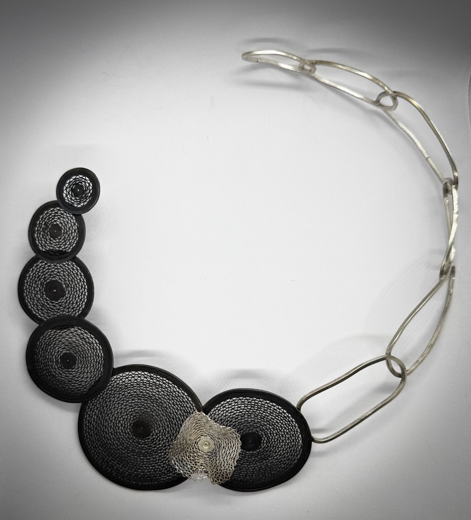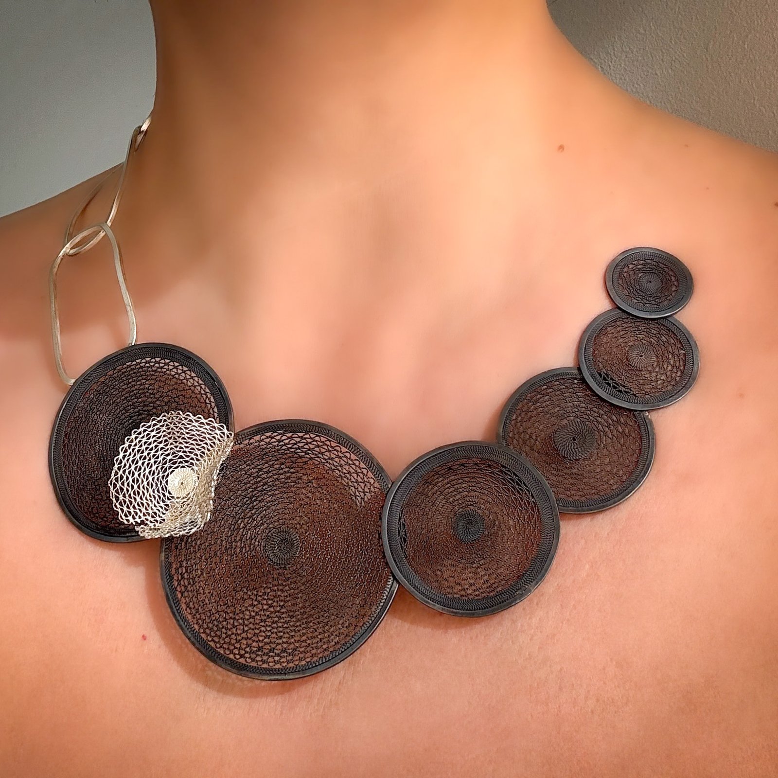 Collar de filigrana en Plata 950 y Plata 999, con contraste de tonos que acentúa su profundidad y carácter.